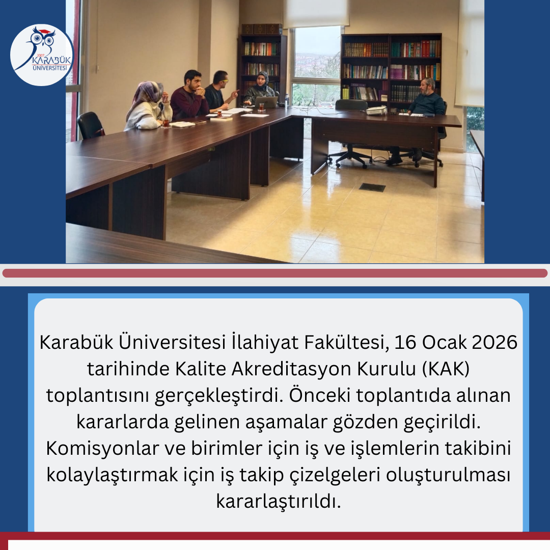İlahiyat Fakültesi Kalite Akreditasyon Süreci: Kalite Akreditasyon Kurulu (KAK) Toplantısı Gerçekleştirildi